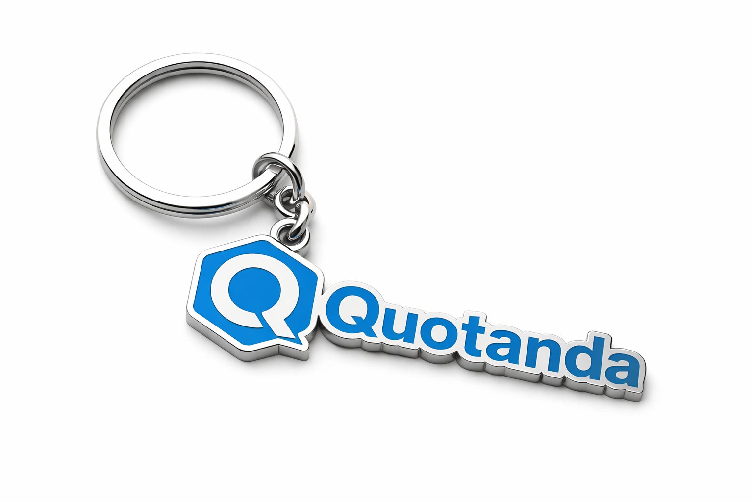 Llavero metálico con acabado esmaltado y el logotipo oficial de Quotanda. Resistente, ligero y elegante, ideal para el uso diario o como merchandising corporativo. Un accesorio práctico que refuerza la identidad de marca.